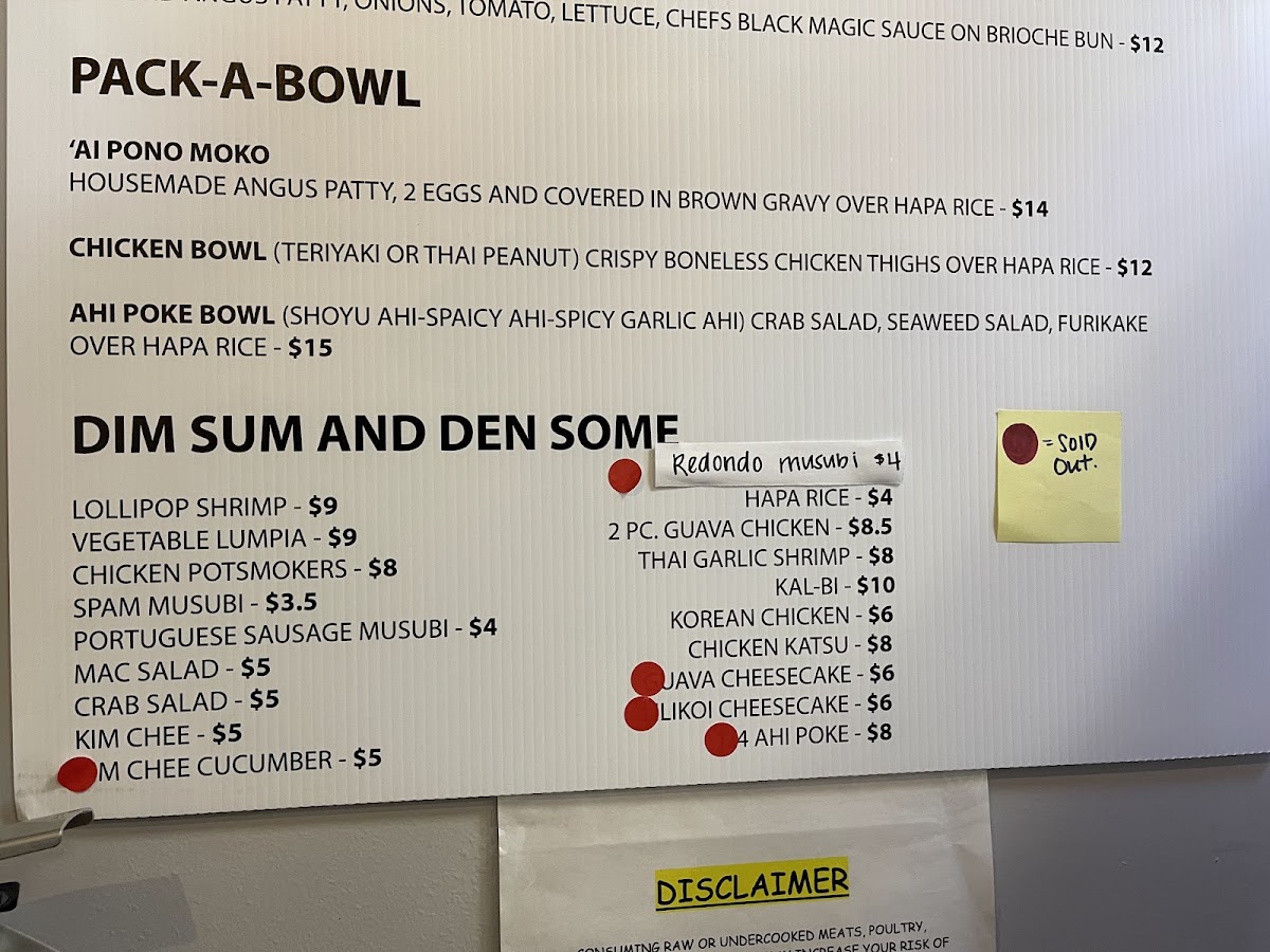 For those who enjoy a good snack or appetizer, the Dim Sum & Den Sum offerings are an exciting choice. Try the Kimchi Cucumber or the ever-popular Spam Musubi. The Vegetable Lumpia (3 Pcs) is also a great option for those seeking a crispy, savory bite. Pair these with some delicious Macaroni Salad or Kimchi for a true Hawaiian experience.
